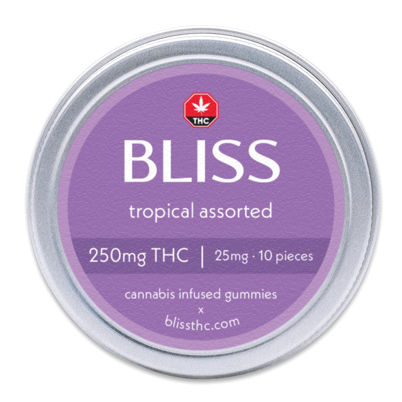 Bliss Flavors | Blue Raspberry 250mg THC, Daydream 1080mg THC, Green Apple 250mg THC, Juicy Grape 250mg THC, Party Mix 250mg THC, Party Mix 375mg THC, Peach 250mg THC, Pineapple 250mg THC, Sweet Escapes 1080mg THC, Tropical assorted 250mg THC, Tropical assorted 375mg THC, Watermelon 250mg THC |