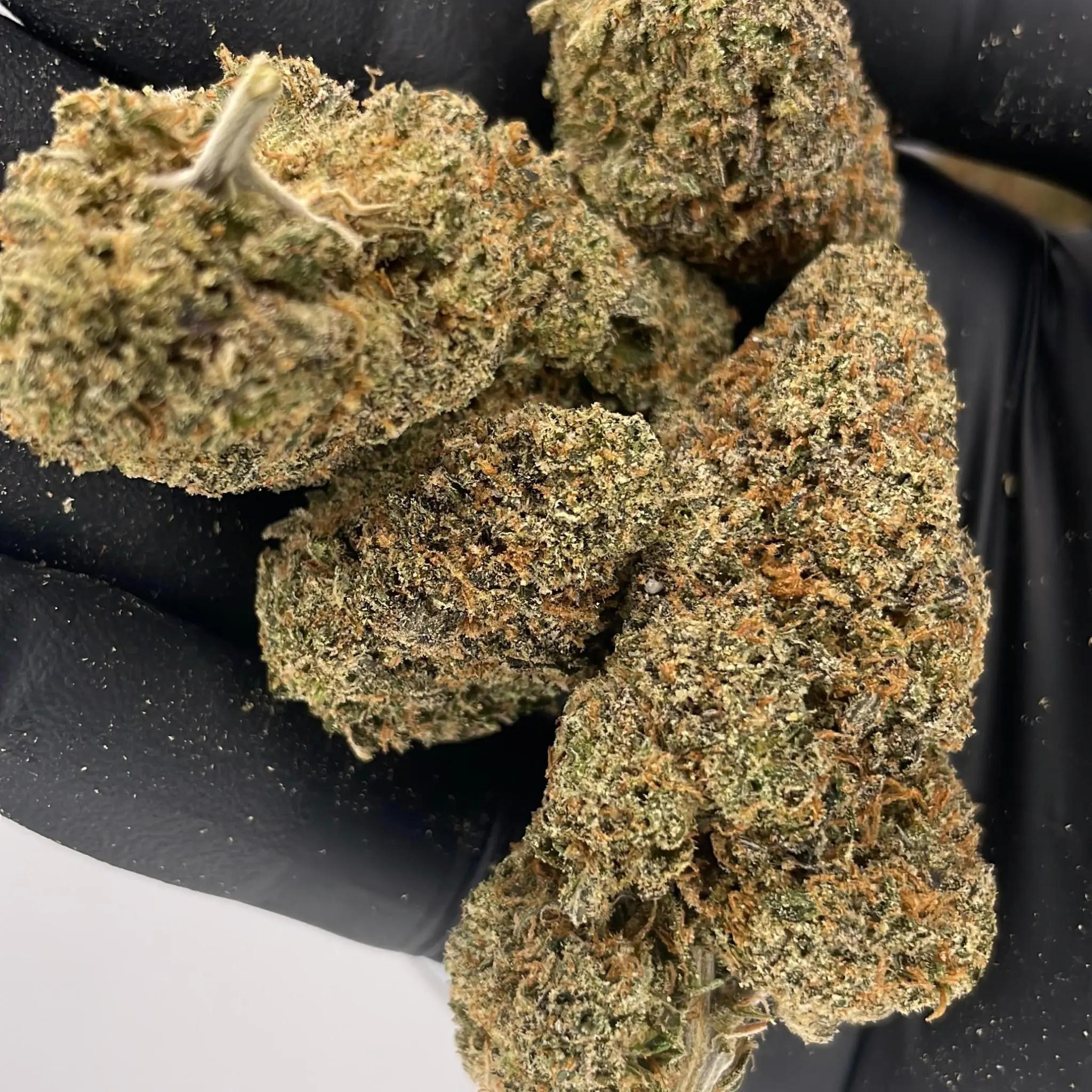 Discover Hood Candy, an exceptionally potent indica-dominant hybrid strain (70% Indica / 30% Sativa) crafted by Solfire Gardens. This hard-hitting strain is a genetic cross of the legendary Runtz and Why U Gelly, delivering THC levels ranging from 23-32%, making it one of the most powerful strains available for experienced cannabis consumers.