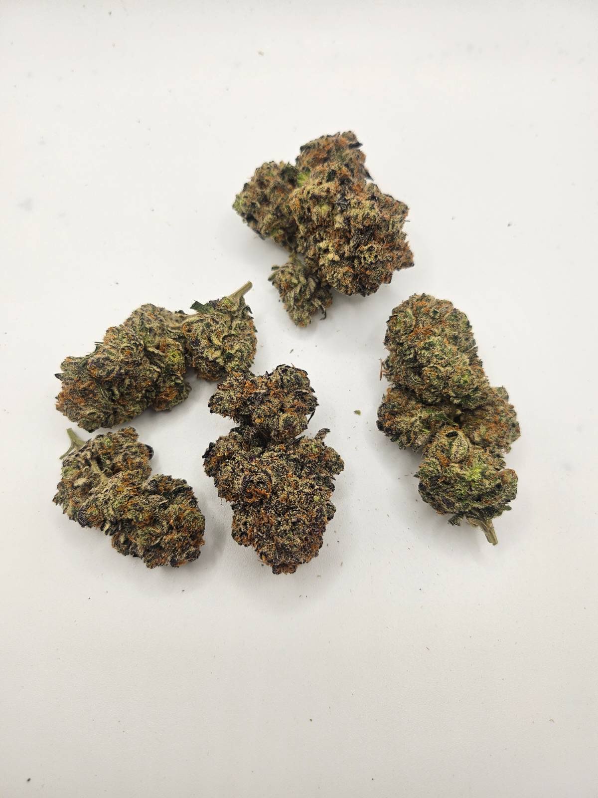 Gello Shotz, sometimes called Jello Shots, is an evenly balanced hybrid bred from the flavorful Gello and Runtz strains. With THC levels ranging from 19%–24%, this strain is loved for its layer of tropical, lemony candy and gas aromas, paired with vibrant green buds, fiery orange hairs, and flecks of purple. The effects are as fun as their name—expect an energetic, creative, and social high with uplifting vibes and mellow euphoria. Gello Shotz is designed for both daytime motivation and nighttime relaxation, offering a smooth transition from mental clarity to body calm without intense sedation or couchlock. Popular for stress relief, mood elevation, and mild pain management, this strain’s profile is perfect for anyone seeking inspiration, focus, and an enjoyable recreational experience. The flavor is all sweet, candy-forward citrus and diesel, making every puff a refreshing treat.