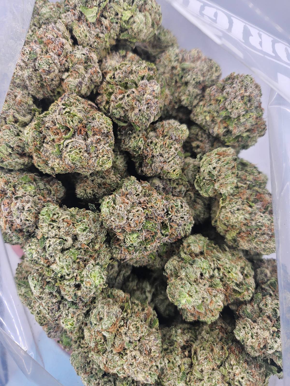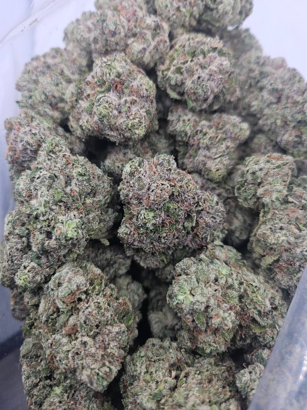 Creamy berry, citrus, and gas flavors with dense, frosty buds