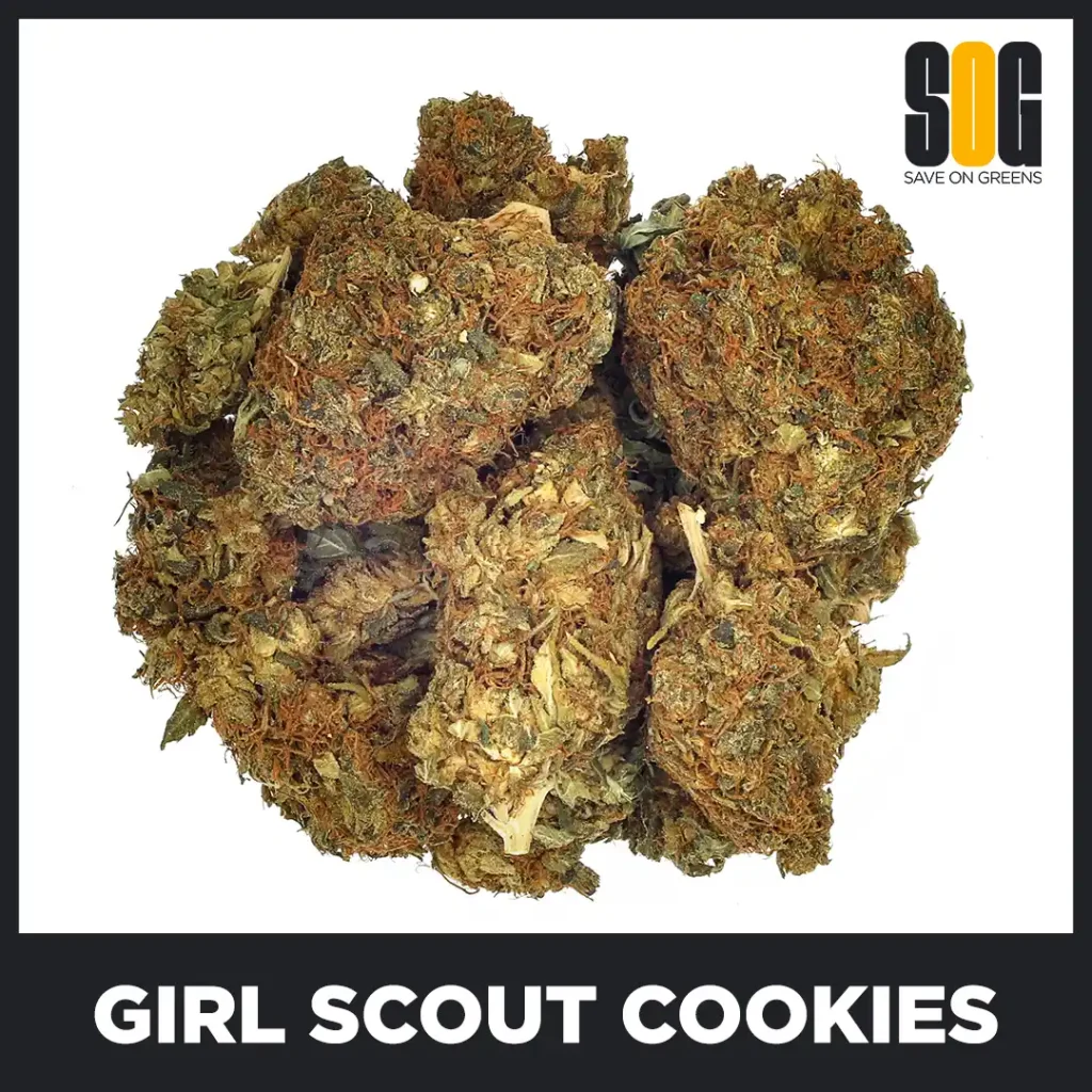 Girl Scout Cookies (GSC) is an Indica-dominant strain known for its rich mint, cherry, and lemon flavor. Originating from California, GSC is a cross between OG Kush and F1 Durban, and it has 25% THC.